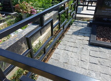 Перед нами стандартная могила, где уже захоронено два человека. Мы оставляем без изменения только ограду, ее мы только надежно зацементируем и покрасим. Все остальное мы изготовим и установим.