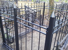 Далее демонтируем все с территории могилы и выпрямляем ограду. Для этого потребовалось полностью откопать две задние ножки, выпрямить ограду и заново залить цементом.