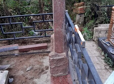 Клиент пожелал сохранить старое надгробье, а потому его мы попросту переустановили, параллельно с этим установив по периметру участка простую металлическую оградку. Все работы велись строго по уровню, а потому перекосы ограждения или надгробья абсолютно исключены.