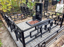 На территорию участка мы уложили гранитную брусчатку, справа от памятника установили простую лавочку без спинки, перед надгробьем разметили гранитную вазу, а цветник засыпали мульчей. Клиент остался очень доволен результатами благоустройства могилы.
