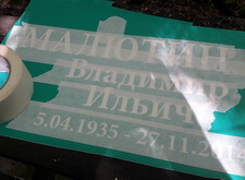 В этом заказе нам было необходимо нанести новую надпись и приклеить фотокерамику на уже существующий памятник.