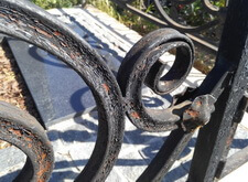 Клиент хотел остановиться на этом и покрасить ограду сам, но через некоторое время попросил сделать это нас. Полностью согласен с таким решением, поскольку среди тех могил, что лично я видел, данная ограда одна из сложных. А хорошо ее почистить и покрасить сможет не каждый. Посмотрите на ограду поближе.