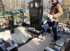 Пока раствор схватывался, мы обработали памятник, полностью подготовив его к монтажу.