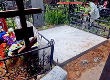 В завершении устанавливаем цветник, наполняем его каменной крошкой. Покрываем надписи на граните акриловой краской, которая сделает текст заметным во время дождя. Перед сдачей объекта клиенту проводим на участке влажную уборку. На последних фотографиях видно, что благодаря наземному покрытию место захоронения преобразилось до неузнаваемости.