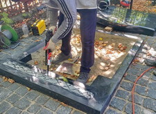 Подготавливаем основание для надгробья, приносим памятник и монтируем его.