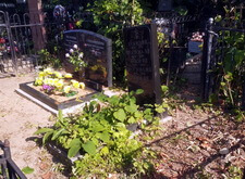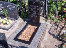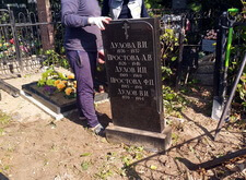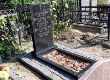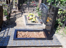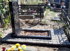 Небольшую могилу окаймляет гранитная брусчатка, что дополнительно придаёт месту захоронения ухоженный вид.