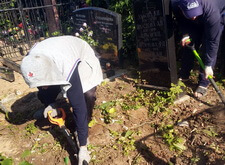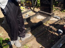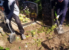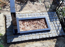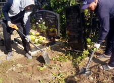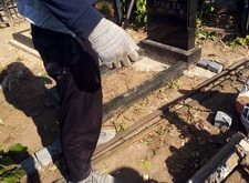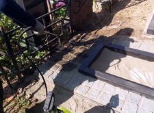 После того, как памятник был отодвинут, начинаем выравнивать его площадку. Досыпаем землю.