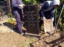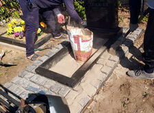 На этом работа с данным объектом была завершена. Памятник выставлен по уровню на качественном основании, которое уже никуда не поедет и не просядет.