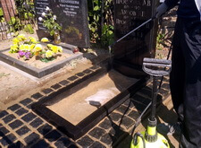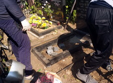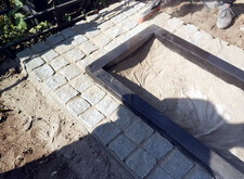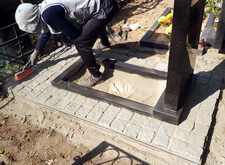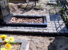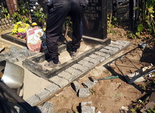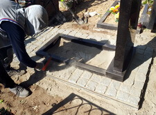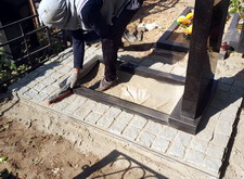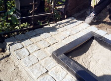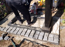 На данном объекте нам предстояло ровно установить покосившийся памятник, а вокруг цветника положить гранитную брусчатку.