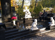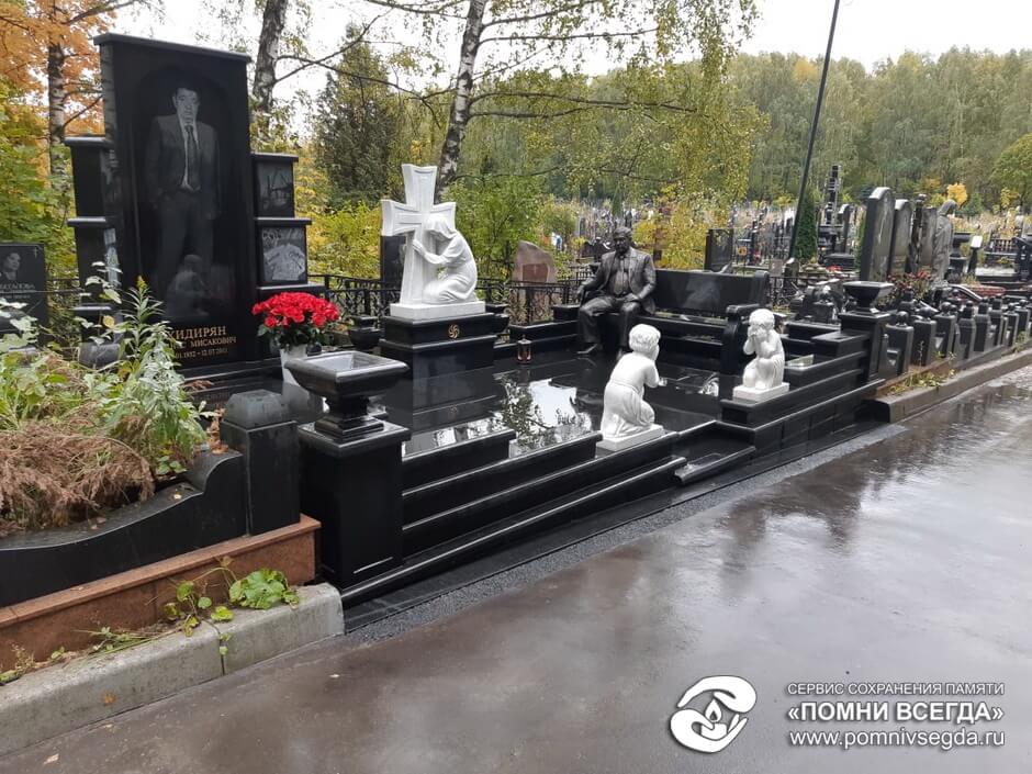 На последних фотографиях представлен внешний вид места захоронения на момент сдачи объекта: прилежащая территория приподнята, мраморные элементы мемориальной композиции покрыты гидрофобным раствором, портрет усопшего и его статуя приведены в надлежащий вид.