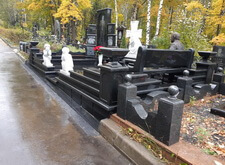 В ходе работ возникло небольшое недопонимание между нами и администрацией кладбища. Нас попросили убрать выступающую на проезжую часть площадь прилежащей территории. Конфликт был урегулирован, мы немного подрезали гранит и положили в образовавшуюся нишу холодный асфальт.
