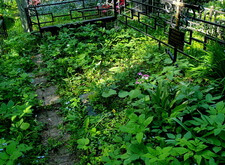 В данном случае клиент обратился к нам за уборкой большого места захоронения без наземного покрытия. Сорняк густо разросся на участке, практически полностью закрыв собой бетонную плитку, из которой была выложена дорожка к памятникам.
