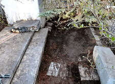 Мы вычистили с территории участка сорную траву, срезали откровенно мешающие ветви деревьев. Памятник был просто протёрт, провести полную очистку мрамора клиент не пожелал.