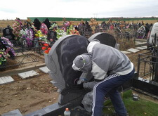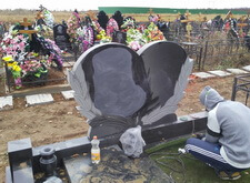 Далее мы полностью заполировали старый портрет и всю надпись, сделали это прямо на кладбище, не перемещая сам памятник.